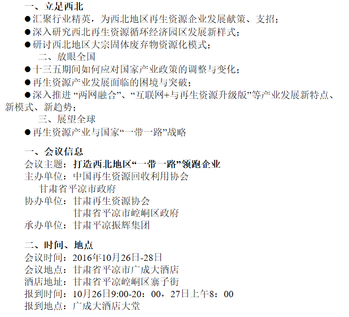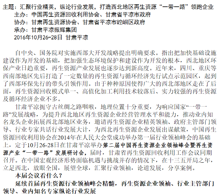 關于召開第二屆中國再生資源企業領袖峰會 暨再生資源產業“一帶一路”發展研討會的通知