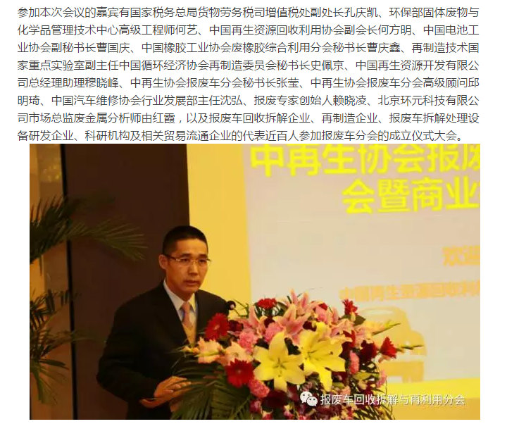 中再生協會報廢汽車分會成立 會議在京圓滿結束