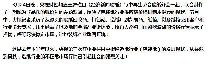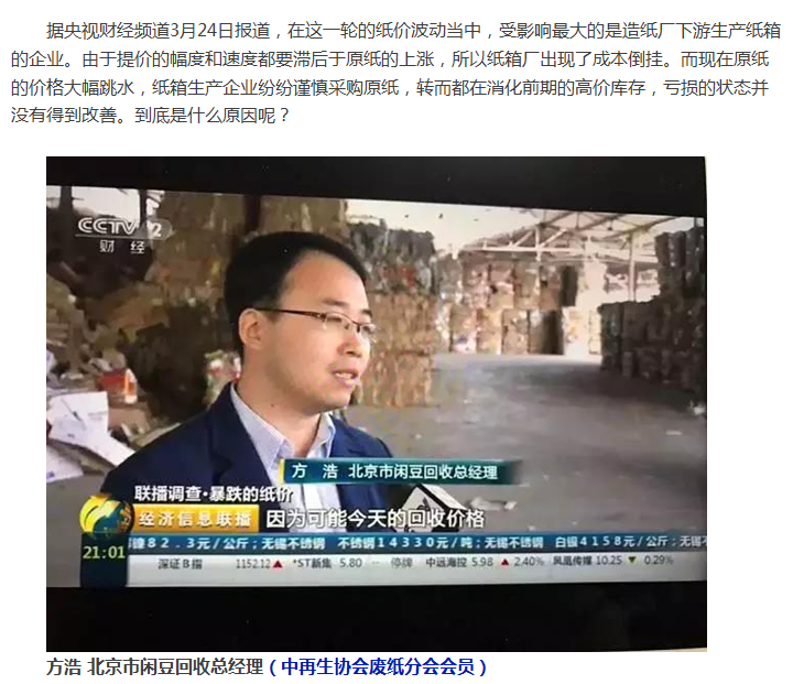 中再生協會廢紙分會聯手央視再調查,暴跌暴漲的紙價原罪在誰?